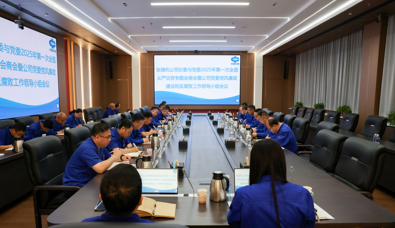 5月26日,中煤張煤機公司紀委與黨委召開2025年第一次全面從嚴治黨專題會商會暨公司黨委黨風廉政建設和反腐敗工作領導小組會議,深入學習《中國共產黨重大事項請示報告條例》《中國共產黨組織處理規(guī)定》有關內容,研究部署公司全面從嚴治黨工作。張洪軍主持會議并講話,班子成員圍繞全面從嚴治黨“一崗雙責”履職情況以及存在的問題、改進措施逐一進行交流發(fā)言。